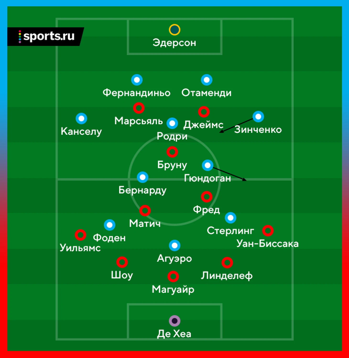 «МЮ» достаточно хорош в персональном давлении, поэтому периодически тормозил атаки и даже отбирал мяч на чужой половине. «Сити» подготовил варианты специально под такой прессинг, поэтому чаще других соперников его проходил.