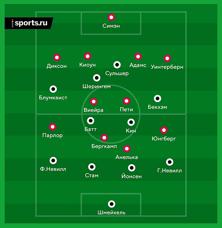 Если бы той весной у игроков «Манчестер Юнайтед» была возможность выбрать, в матчах с каким соперником решить судьбу сезона, это точно не был бы «Арсенал». Команда Арсена Венгера оставалась действующим чемпионом Англии и обладателем Кубка. Позже Райан Гиггз и Гари Невилл назовут чемпионскую версию-1998 сильнейшей: она была превосходна в физике, пара Виейра – Пети доминировала в центре, фланги давали энергию и скорость, а Деннис Бергкамп был одновременно и нападающим, и плеймейкером.