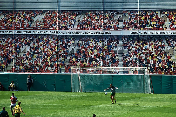 Все изменила трагедия на «Хиллсборо». Публикация расследования Тейлора привела к жесткой рекомендации оборудовать все стадионы только сидячими местами. В 1992-м северная трибуна «Хайбери», собиравшая самых преданных и страстных фанатов «Арсенала», была разрушена. Началось строительство новой. Но проведение матчей не прекращалось, поэтому строительство прикрывал огромный мурал с изображением фанатов.