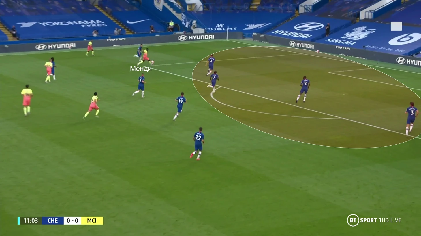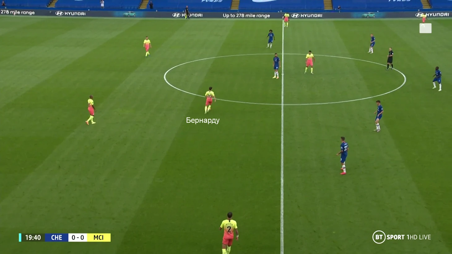 Такая же структура сохранилась и против «Челси». Вингеры играли узко по центральным защитникам, а Бернарду оглядывался на опорника Нголо Канте, но давил и на Кепу. Это один из редких позитивных моментов первого тайма. Именно так «Сити» организовал свой самый опасный момент с игры: