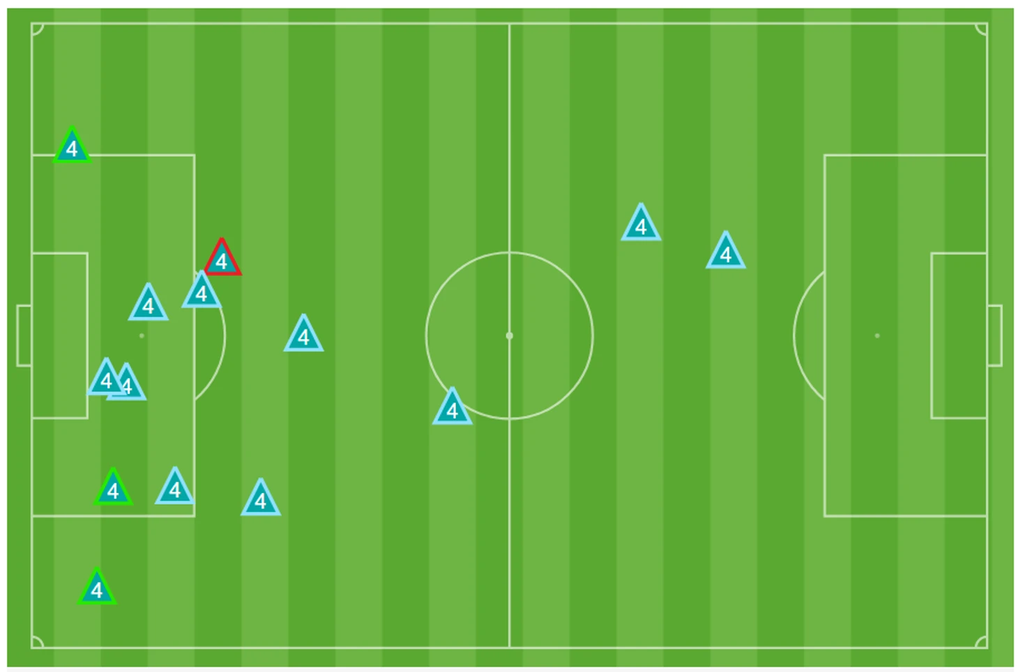 8. При обороне «Челси» использовал схему 4-1-4-1 с достаточно глубоким расположением и высоким уровнем компактности: