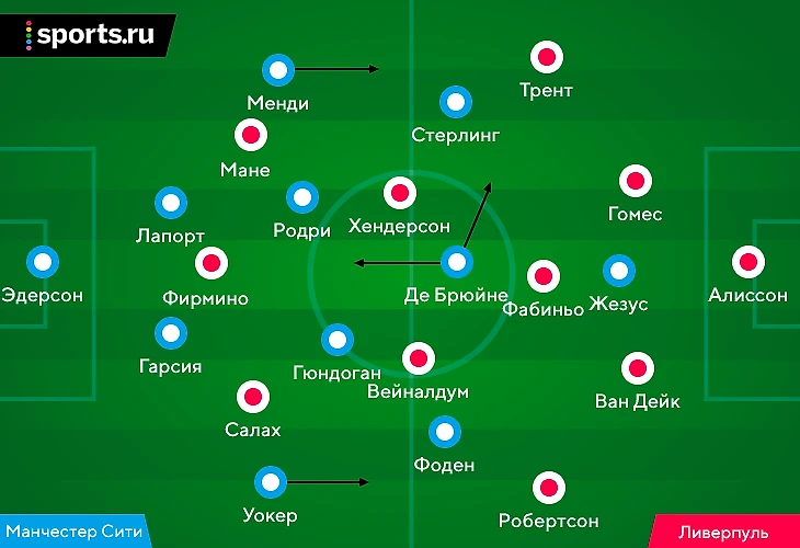 Прагматичное решение Гвардиолы принесло «Сити» не только преимущества, но и некоторые проблемы. Высокая линия защиты без постоянного давления на соперников, с открываниями Салаха и Мане – весьма страшный сценарий. У «Ливерпуля» возникали хорошие моменты для прямого обострения от защитников к этой парочке.