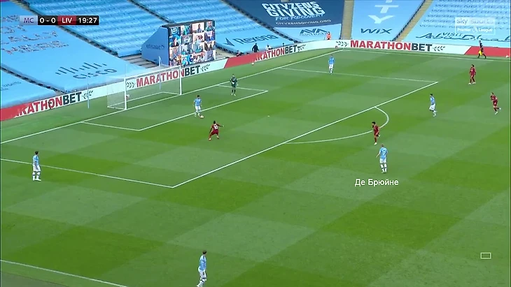 А тут опустился еще и Де Брюйне, чтобы сохранить преимущество в одного игрока (5-в-4):