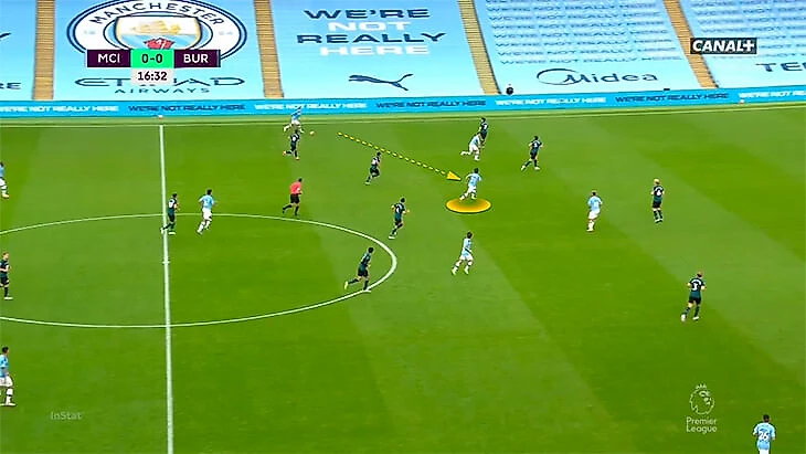Матч с «Бернли» при Гвардиоле. Сильва в полуфланге, но уже принимает там мяч от Зинченко.