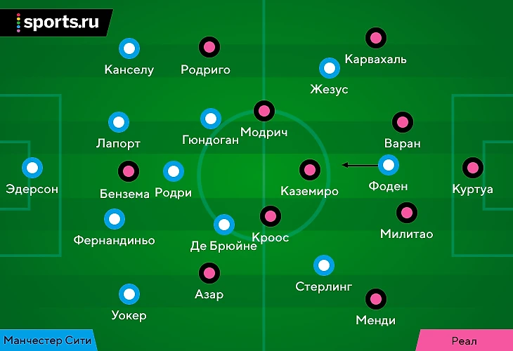 Это был рискованный вариант, который должен был прижать «Сити» и лишить его возможности для розыгрыша. Ведь до этого момента «Мадрид», уступая весь матч, даже не зажал соперника – 38% действий на трети «Реала» против 21% на трети «Сити». «Реал» заставил «Сити» отказаться от коротких розыгрышей в конце матча, но не более. Моментов создать не получилось.