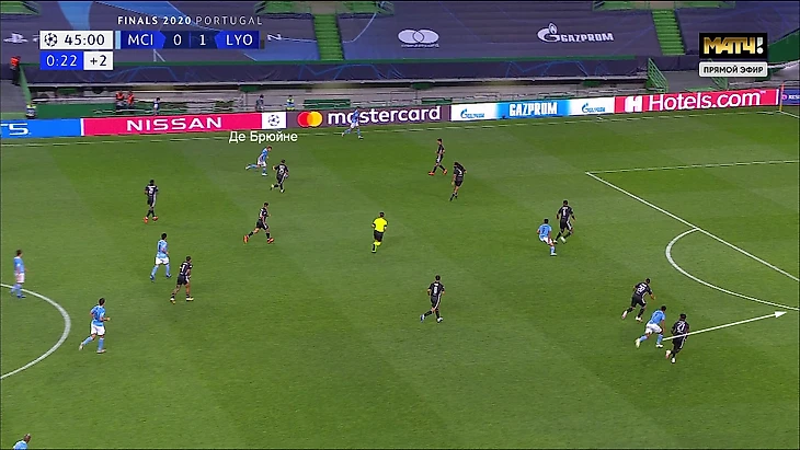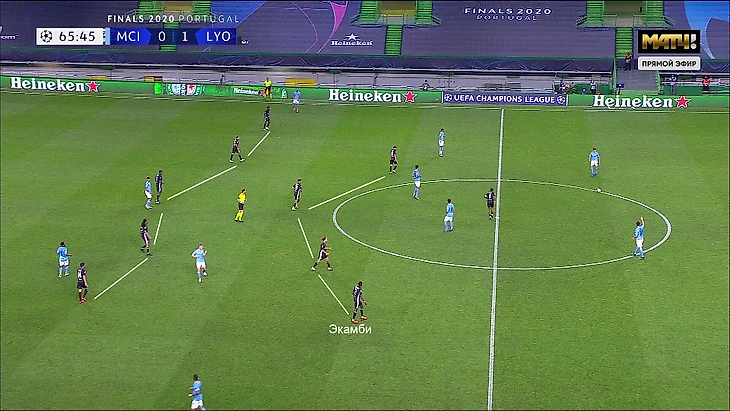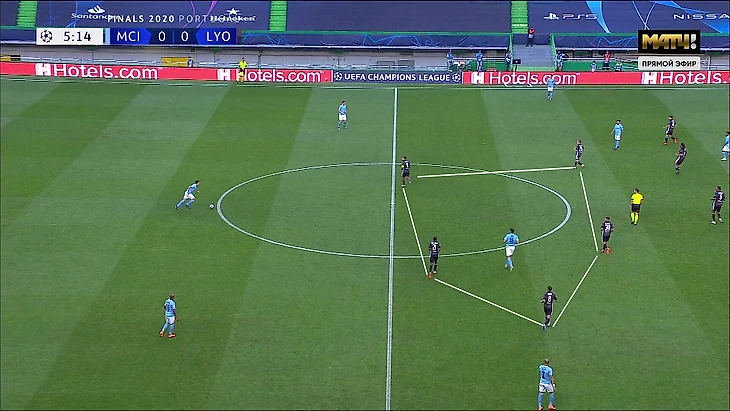 Под это движение удобно было подстраиваться и Максу Корне, который привык играть именно вингера, а не латераля. В первом тайме «Лион» разыгрывал мяч коротко, что давало команде передышки. Вариативность и трансформации путали «Сити» в этой стадии.
