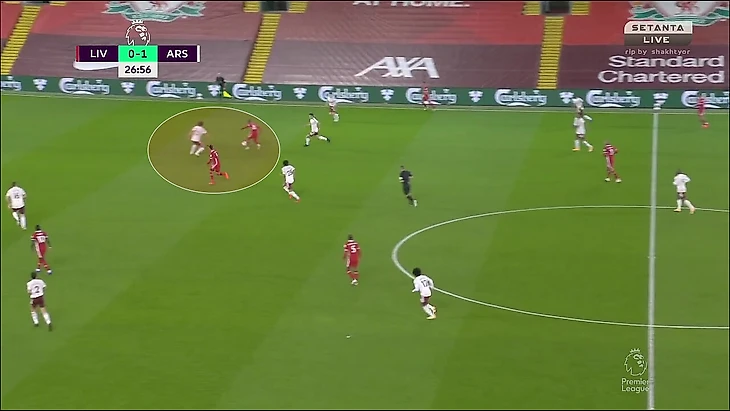Практически все провалы прессинга на старте сезона были с его участием (необязательно проблема конкретно в нем, иногда в его плохой коммуникации с партнерами). В голе «Арсенала» он сначала с опозданием выдвинулся на фланг, а потом не договорился с Фабиньо, кто должен накрывать Джаку (оба не успели):