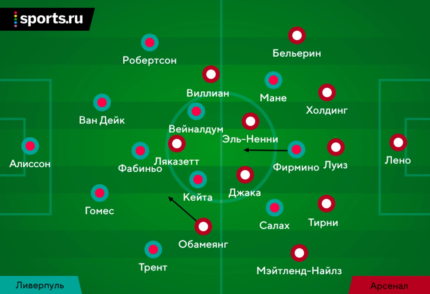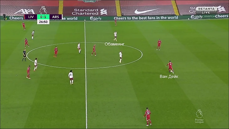 Тренер «Арсенала» описывает не конкретный эпизод, а частую ситуацию. Чтобы организовать прессинг, Обамеянг выдвигался поближе к Ляказетту (иногда даже Виллиан и Обамеянг шли одновременно). Ван Дейк очень тонко чувствовал такие моменты и переводил на правый фланг, где не хватало Обямеянга. И выбор момента, и исполнение были первоклассными.