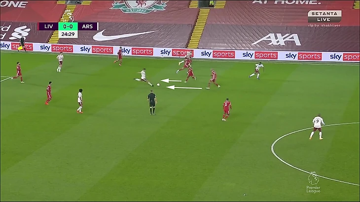 7. Иронично, что «Арсенал» преобразовал в гол единственную успешную попытку игры под прессингом за весь первый тайм (у чужих ворот помог Робертсон, но началось все с прохождения прессинга). Команда Артеты сыграла изумительно в этом эпизоде: чтобы преодолеть давление, потребовалось спокойствие от участников и 4 передачи в касание (почти все исполнители этих передач находились под давлением).