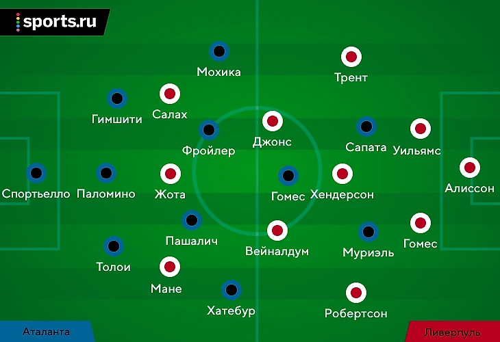 Ключевой интригой была игра «Аталанты» против Трента Александер-Арнольда и Энди Робертсона. По схеме за ними могли подниматься латерали – Йохан Мохика и Ханс Хатебур соответственно. В таком случае тройка нападающих «Ливерпуля» оставалась бы против тройки центральных защитников «Аталанты». Это риск сразу по двум причинам. Во-первых, Мане, Салах и Жота опережают любого из защитников в скорости. Во-вторых, плотная игра «Аталанты» по всему полю оставляла бы им много свободных зон.