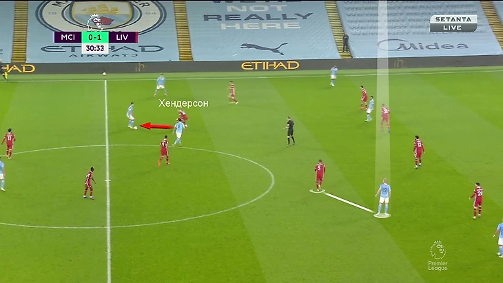 Хендерсон выдвинулся в прессинг на Родри, но не накрыл, а испанец исполнил перевод:
