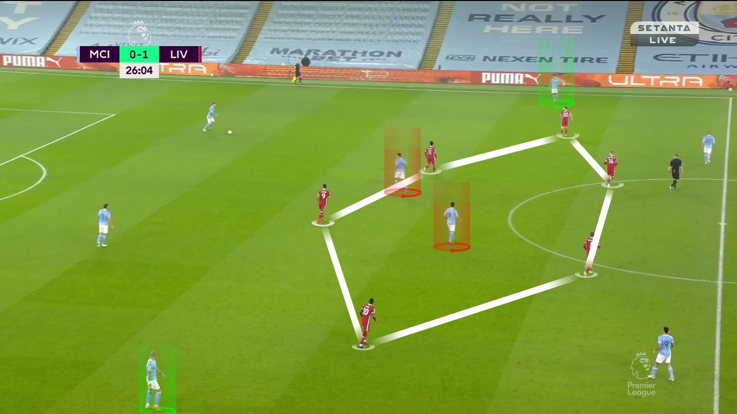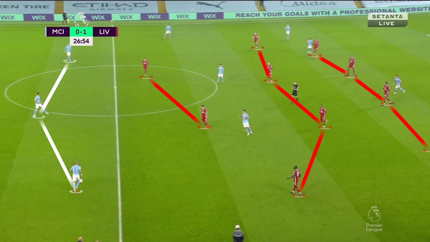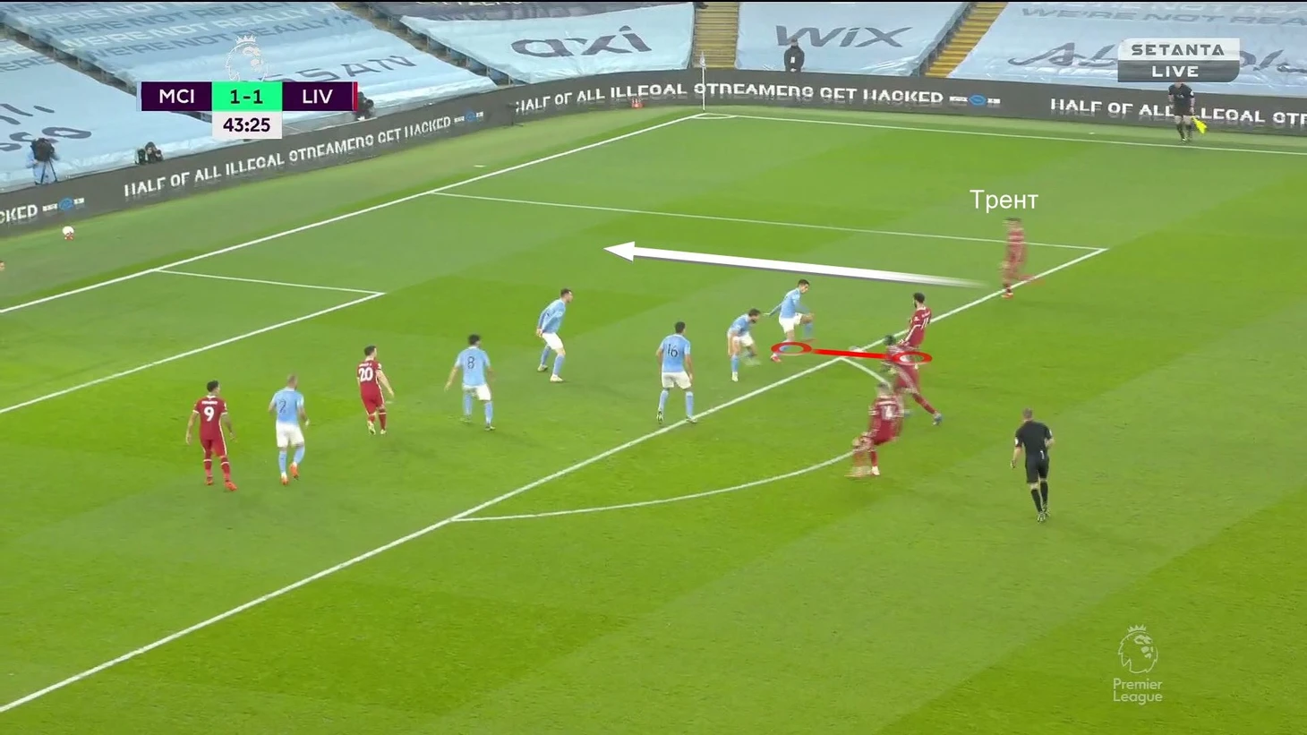 Осознавая, что через центр не пройти, «Сити» строил продвижение через фланг, а там «Ливерпуль» готовил ловушку с численным преимуществом: