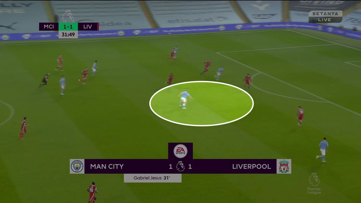 В первые 20 минут «Сити» ни разу не пробил даже в сторону ворот и с трудом добирался до чужой трети поля. Но по ходу тайма команда Гвардиолы предложила новые решения против схемы «Ливерпуля».