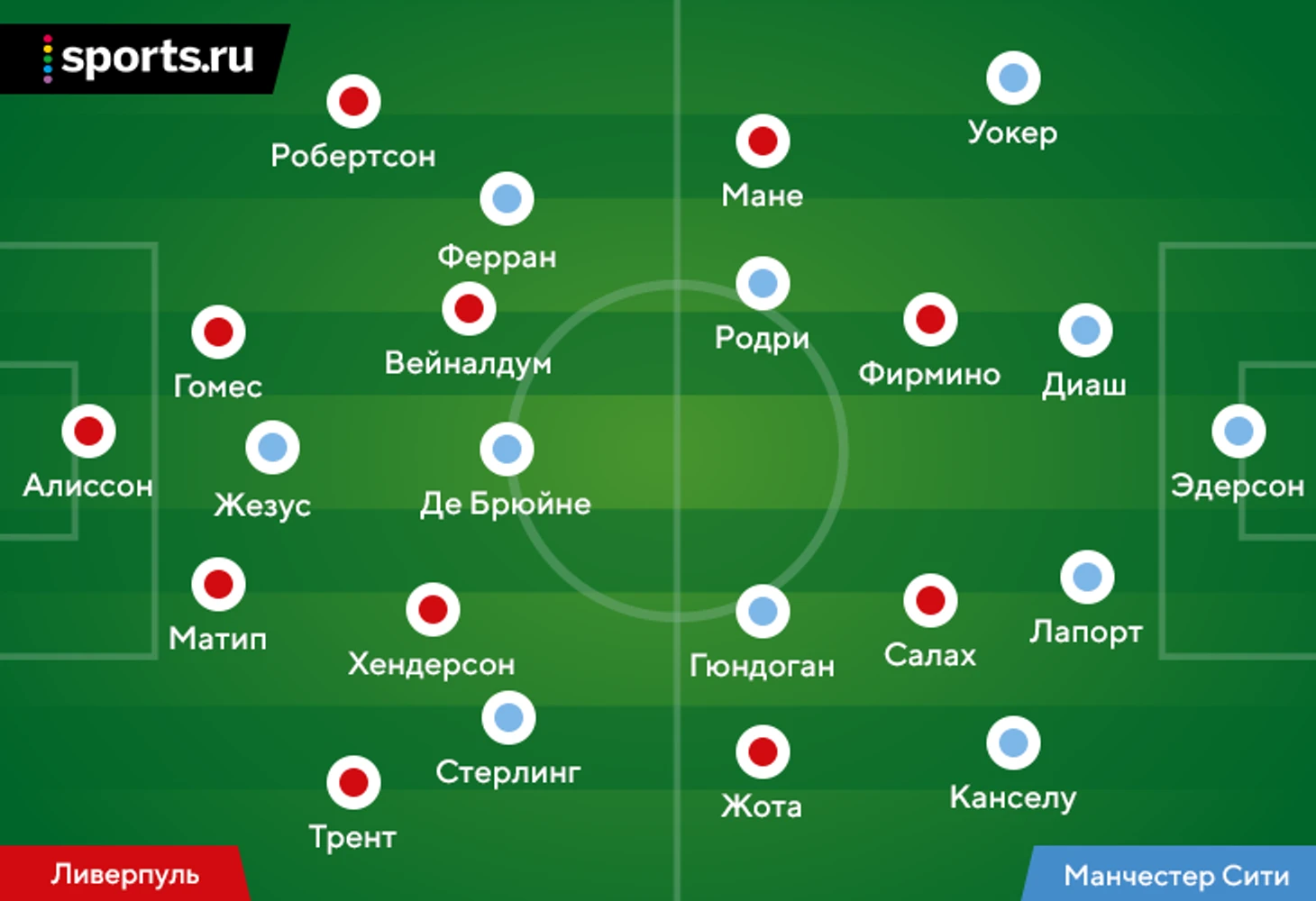 Гвардиола тоже подчеркнул, что это создало проблемы на старте: «Ливерпуль» очень мощно начал. Они создавали нам проблемы за счет открываний за спину. Было трудно – они обладают очень быстрой атакой и вышли с четверкой атакующих игроков в старте».