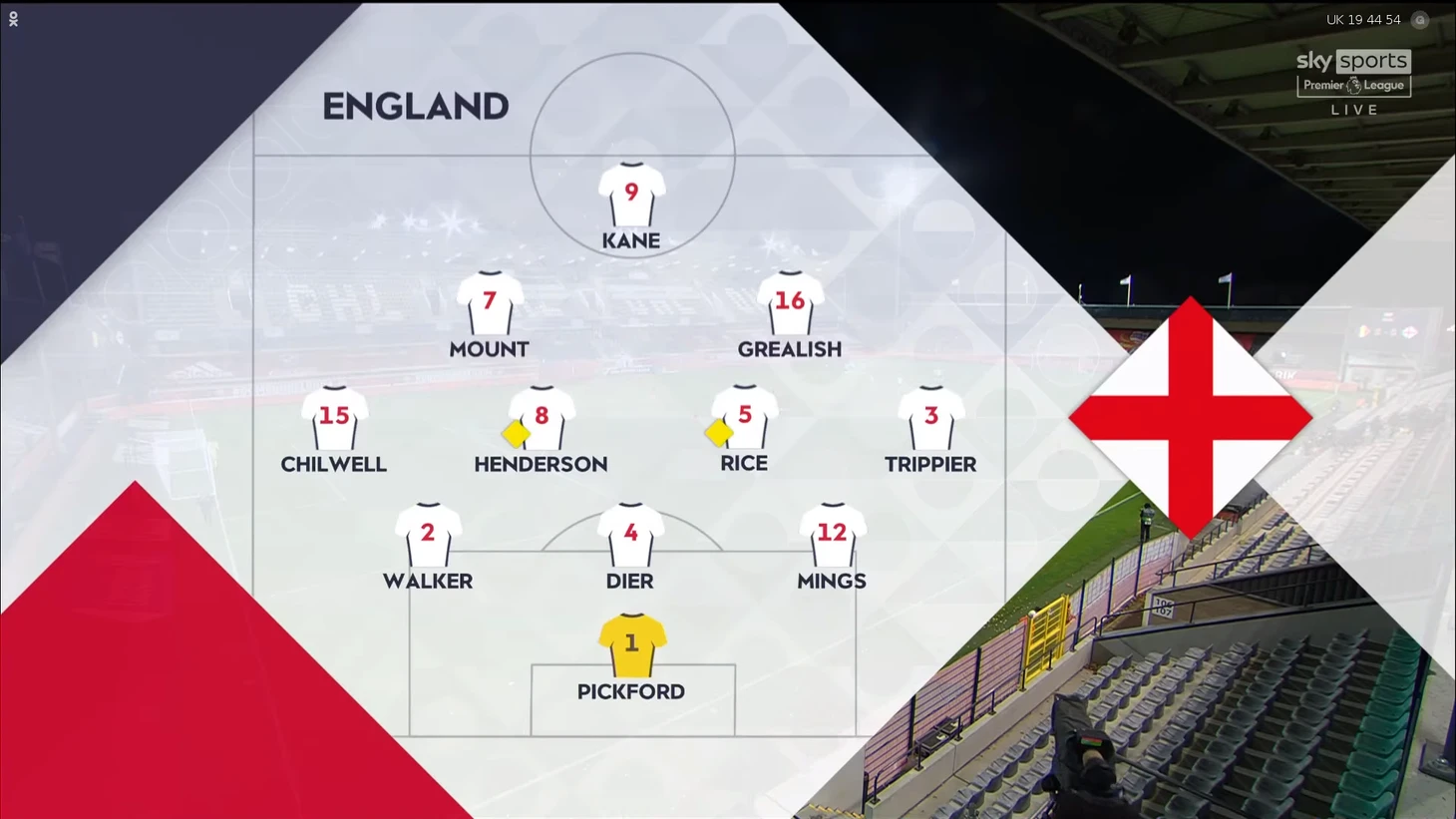 Саутгейт сделал схему в атаке 4-2-4, пытаясь делать больше возвратов мяча и создавать больше возможностей для вывода на качественную ударную позицию. Для этого он поменял недостаточно эффективно игравшего Маунта на свежего Кэлверта-Льюина, а также убрал Триппьера, выпустив реактивного Санчо.