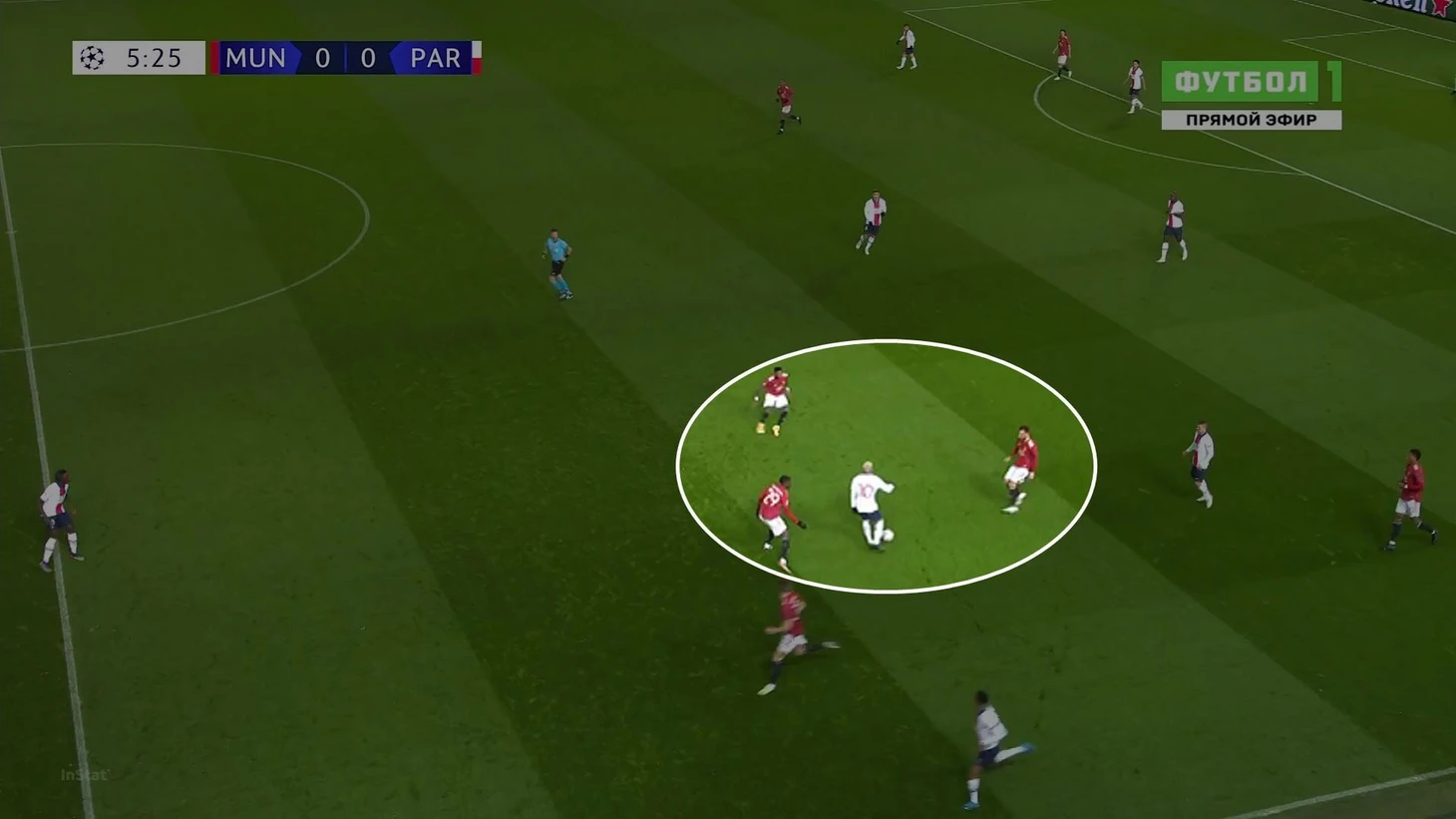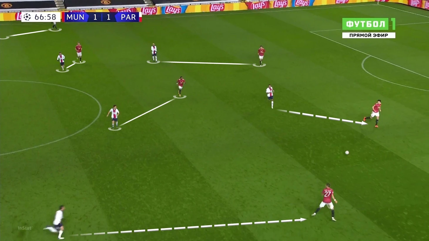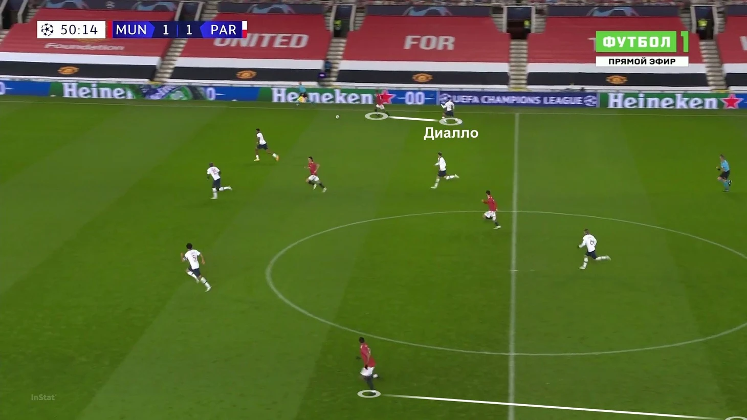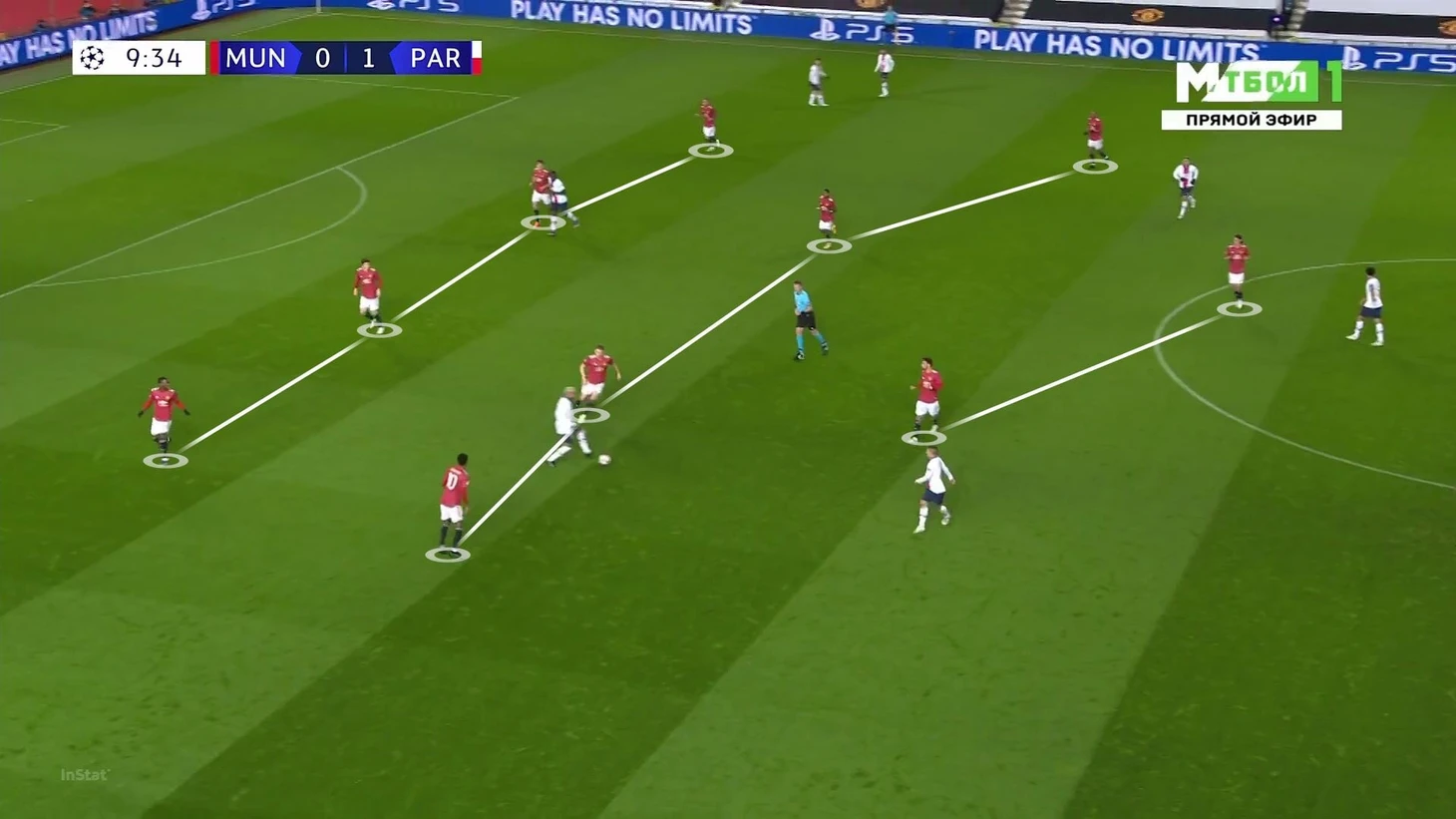 В результате образовался очень четкий рисунок матча. «Юнайтед» тяжело накрывать соперника – у «ПСЖ» хороший контроль и преимущество в игрока в первой стадии. Но «ПСЖ» трудно атаковать через центр – их атаки шли в удобном для «МЮ» направлении.