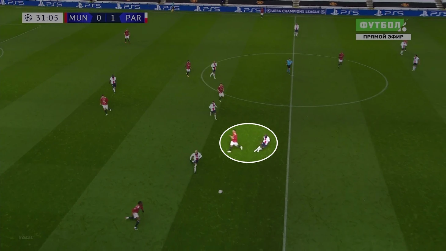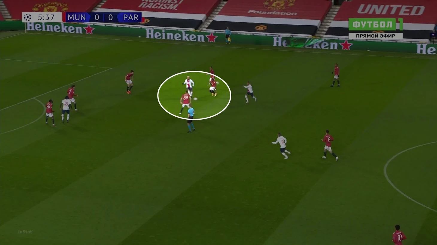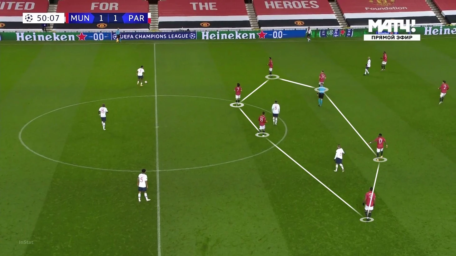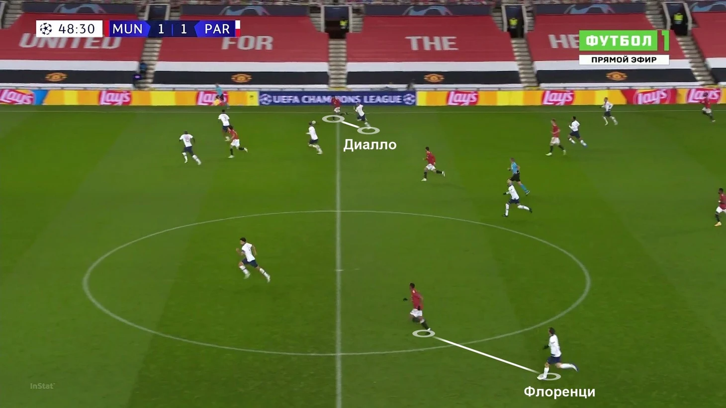 В результате образовался очень четкий рисунок матча. «Юнайтед» тяжело накрывать соперника – у «ПСЖ» хороший контроль и преимущество в игрока в первой стадии. Но «ПСЖ» трудно атаковать через центр – их атаки шли в удобном для «МЮ» направлении.