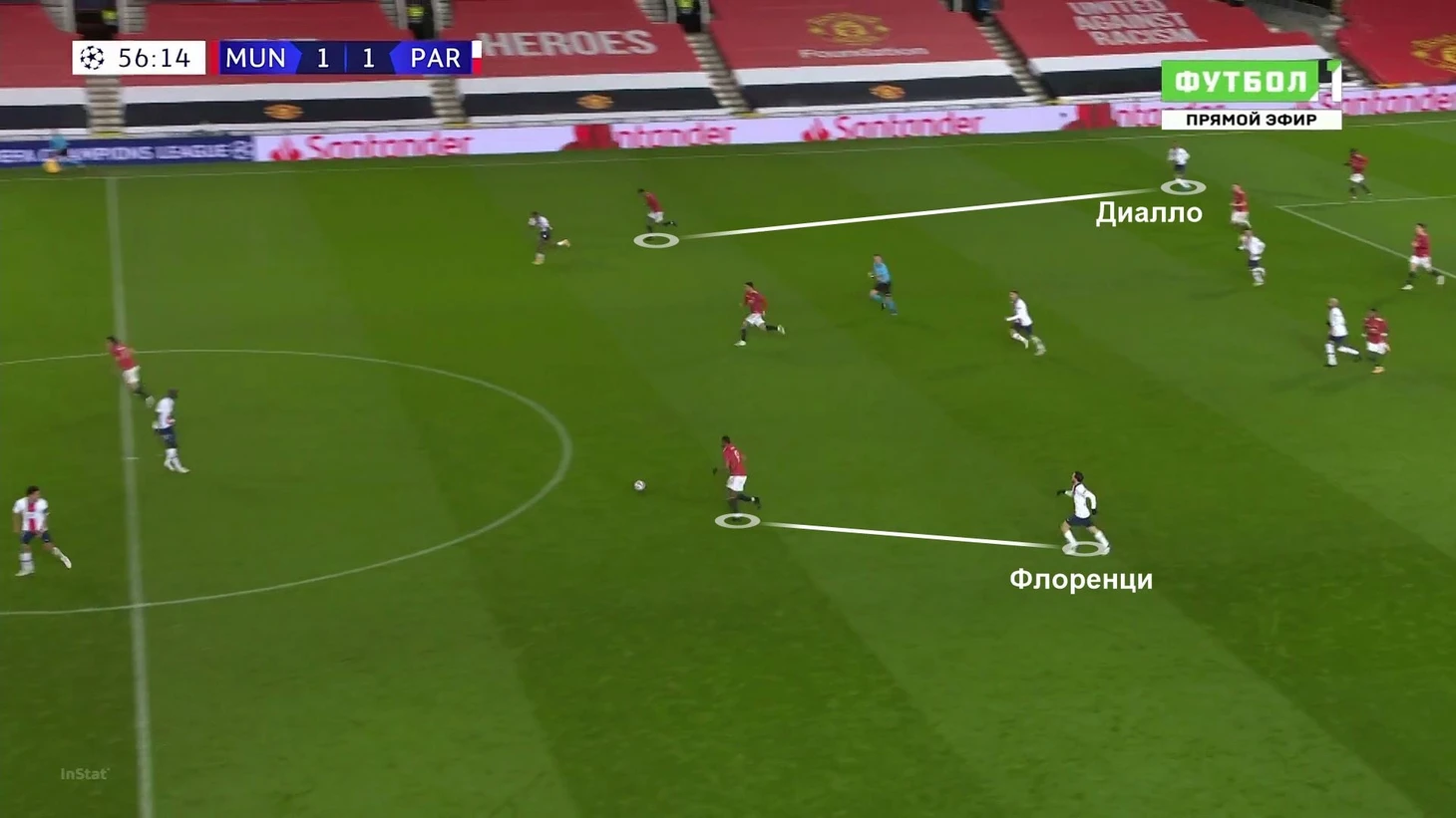 Таких эпизодов было неприлично много. Именно в таком сценарии «ПСЖ» получил выпады в начале второго тайма – промах Марсьяля и перекладина Кавани. Остроты могло быть еще больше – где-то спасали мощные вмешательства Маркиньоса, где-то быстрый Диалло успевал догнать. На системном уровне «ПСЖ» не справлялся с этим типом эпизодов.