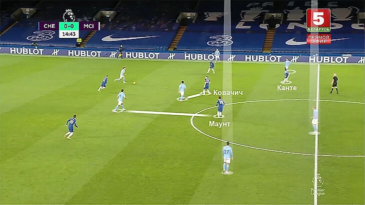 Часто для продвижения приходилось опускаться одновременно Ковачичу и Маунту (тогда атакующих игроков становилось совсем мало, либо одним из них оказывался Канте, что тоже не помогало):