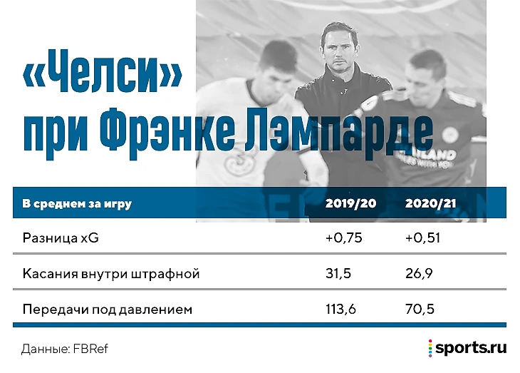 Практически все ключевые для футбола Лэмпарда параметры указывают на то, что команда играет хуже, чем в прошлом сезоне. Не выдает плохие результаты, а именно играет плохо (хотя результаты могли быть чуть лучше при доле везения).