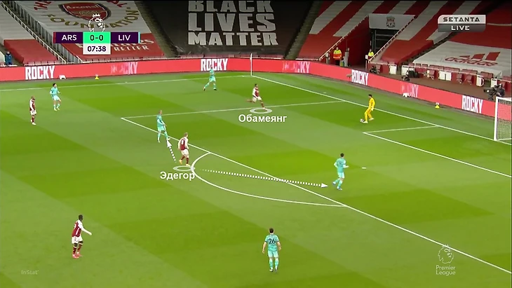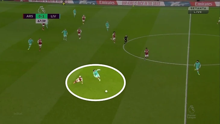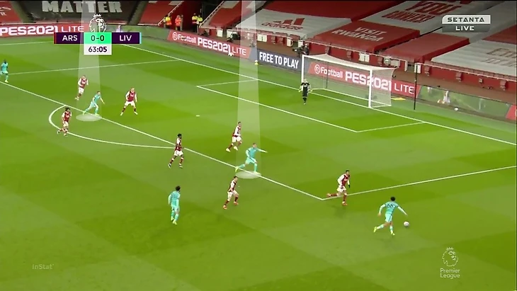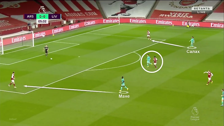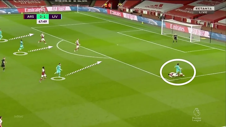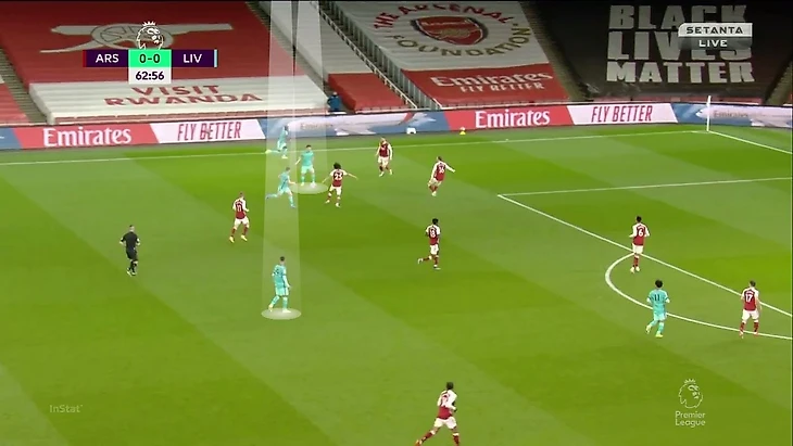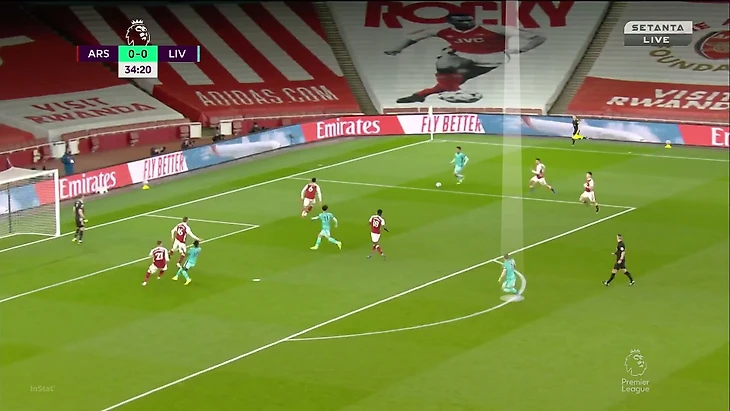 Именно из-за действий ТАА Соареш оказался так высоко (и все равно не остановил атаку), а Габриэл вынужден был обороняться 1-в-1 против Салаха при преимуществе «Ливерпуля» внутри штрафной: