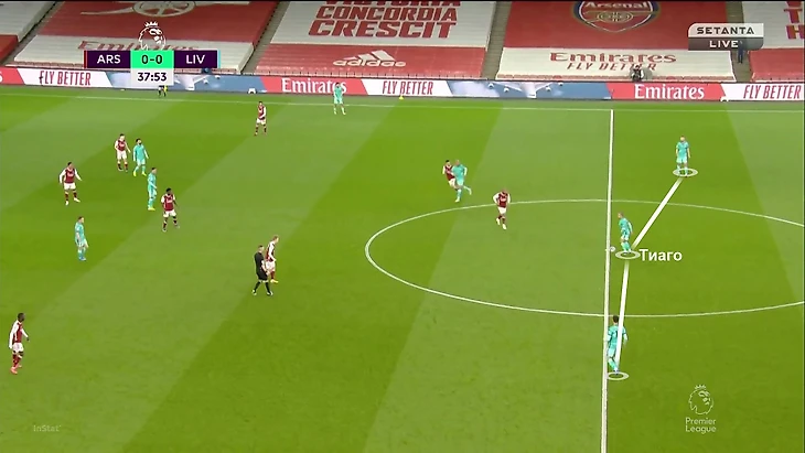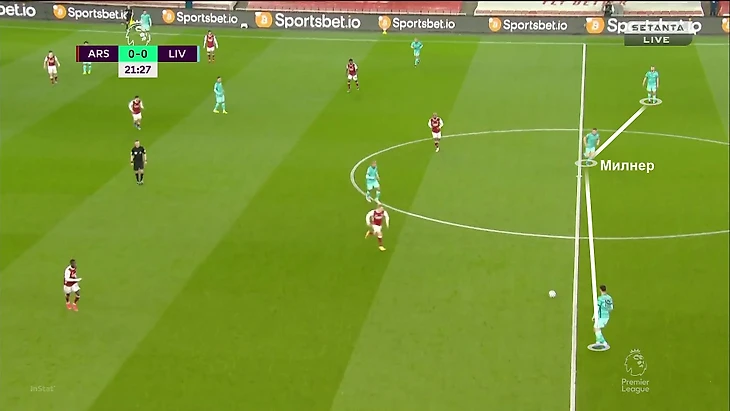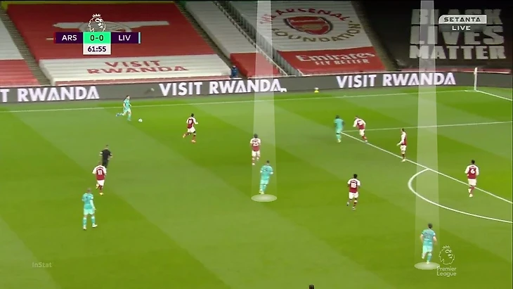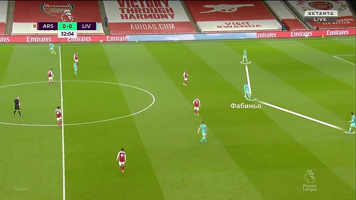 Более того, из-за такой картины «Арсенал» (4-4-2 + дыры в прессинге) не находил ответов, когда «Ливерпуль» образовывал тройку в первой стадии. Команда Клоппа использовала этот прием вариативно – опускаться мог абсолютно любой из тройки полузащитников: