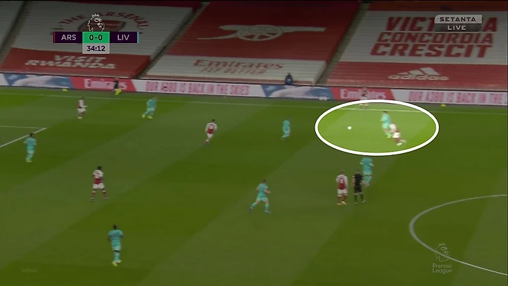 Именно разница в качестве прессинга в ситуации, когда обе команды пытались прессинговать, сделала «Ливерпуль» доминирующей командой. На этой стадии доминирование выражалось во владении мячом и территории (почти вся активность была на трети «Арсенала»). Града моментов у ворот «Арсенала» в первом тайме не было, а лучший шанс «Ливерпуль» получил именно после отбора на чужой половине поля в результате прессинга.