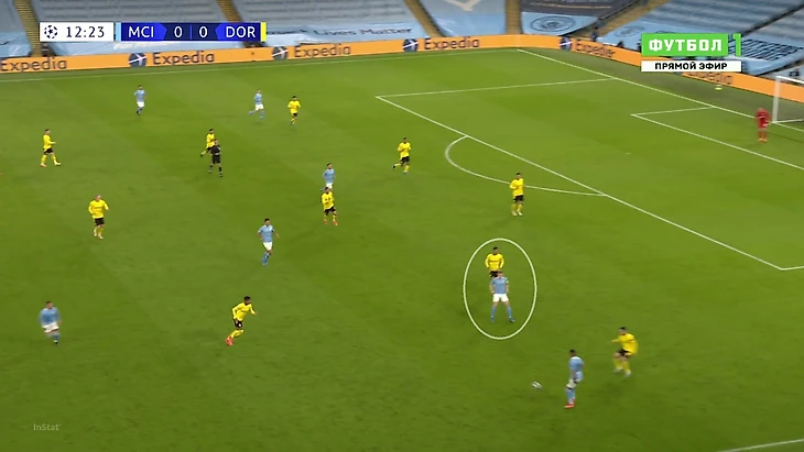 Дополнительным источником проблем стали высокие позиции крайних защитников «Дортмунда» – Матеу Морея и Рафаэля Геррейру. Они не позволяли Фодену (фланг Морея) и Марезу (фланг Геррейру) помочь партнерам и закрыть каждого из тройки Хуммельс/Джан/Аканджи.