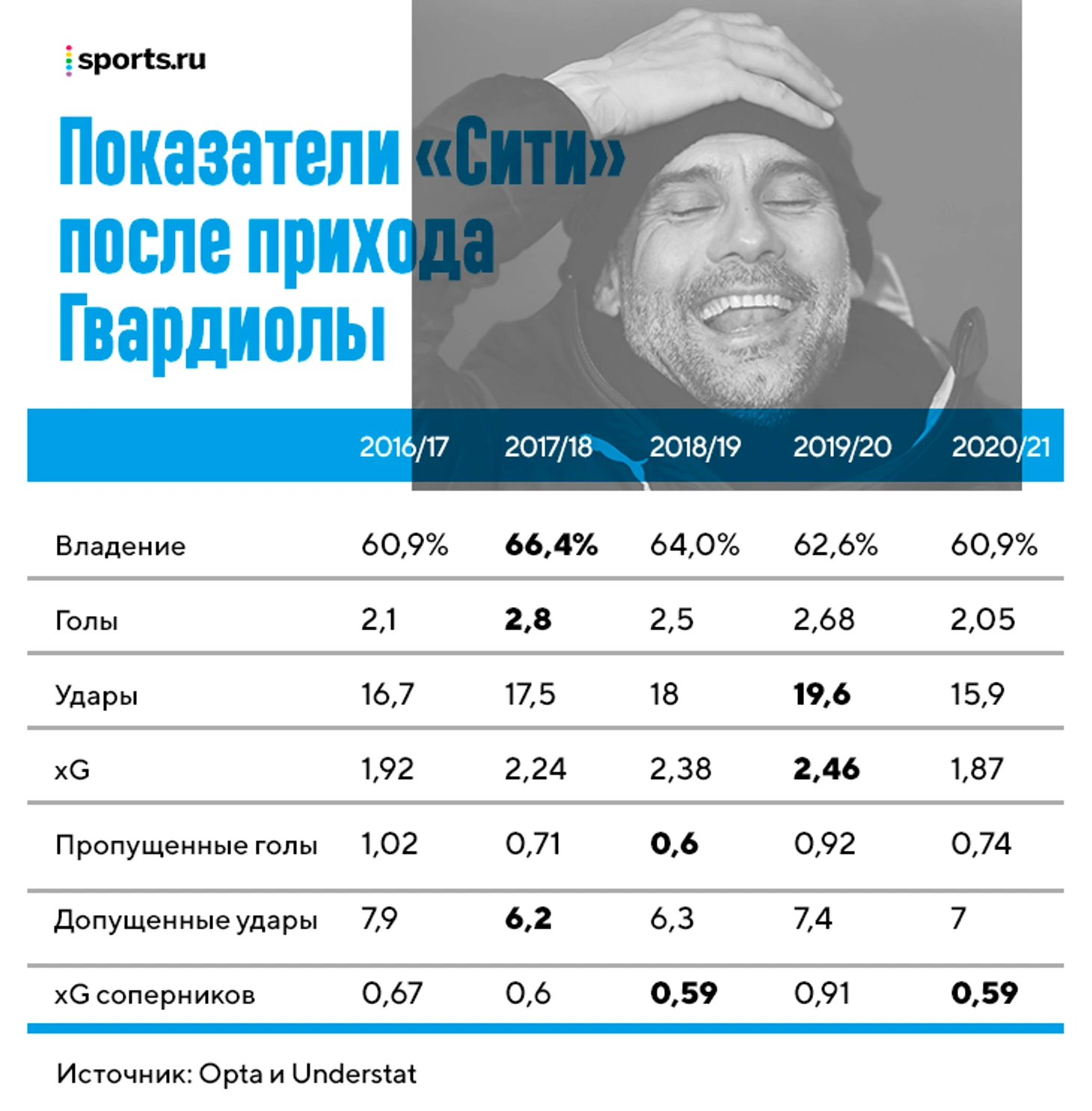 Именно надежность в защите – фундамент для третьего титула Гвардиолы. Возвращаемся к табличке – у «Сити»-20/21 третий показатель по количеству пропущенных голов, зато первый по качеству допущенных моментов. Спокойствие в защите – фактор, который помог и в Лиге чемпионов. Несмотря на серьезные проблемы по ходу матчей (обе игры с «Дортмундом», первая – с «ПСЖ»), команда не теряла голову в стиле предыдущих сезонов (два гола от «Монако» и три от «Ливерпуля» в течение 20 минут, два мяча от «Тоттенхэма» в течение пяти).