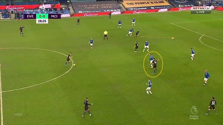 Во втором Родри уже сам увел Сигурдссона – «Эвертону» пришлось прижаться. Канселу ответил рывком из глубины: