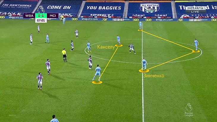 Изменения в игре Канселу напрямую связаны с новой ролью Гюндогана. По сути Жоау компенсировал перемещение Гюндогана в атаку и удаление из опорной. С мячом португалец – опция для розыгрышей через центр, без мяча – все еще классический крайний защитник, который прикрывает фланг.