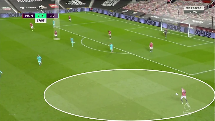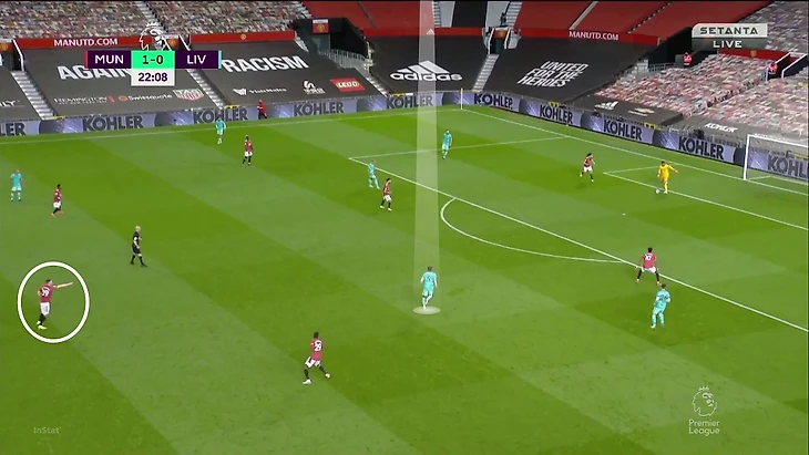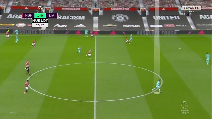 «МЮ» стягивает таким образом прессинг «Ливерпуля» на один край – и резко переводит на другой, где уже полную свободу получает Шоу: