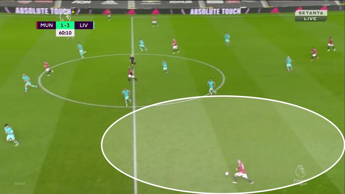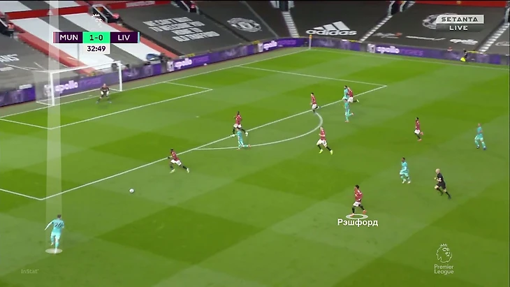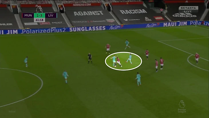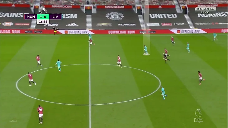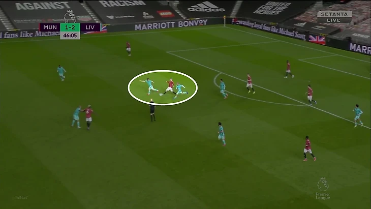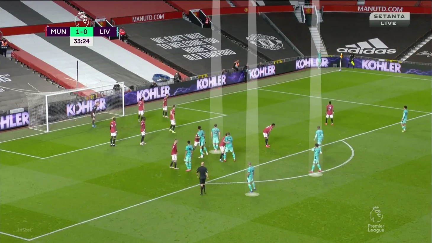 «МЮ» использовал смешанную систему опеки, в которой Жоту никто не опекал (как и футболистов на границе штрафной). Иронично, что в первом голе все эти микродетали сыграли за «Ливерпуль» (Салах пробьет с границы, а Жота завершит атаку):