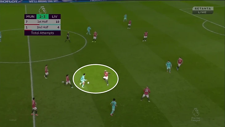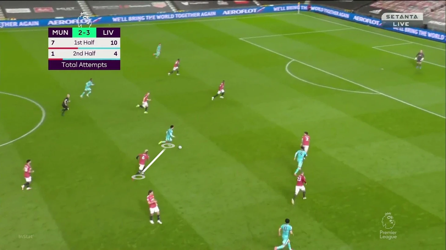8. В начале второго тайма случился отрезок явного доминирования «Ливерпуля». Сильнее всего этому способствовали несработавшие изменения Сульшера: «В начале второго тайма мы начали разыгрывать мяч коротко. Мы доверились игрокам. Иногда такие розыгрыши идут не по плану. К сожалению, именно так сегодня и получилось. Эти принципы выручали нас много раз, но, к сожалению, против «Ливерпуля» это не сработало. Начало тайма получилось совсем провальным».