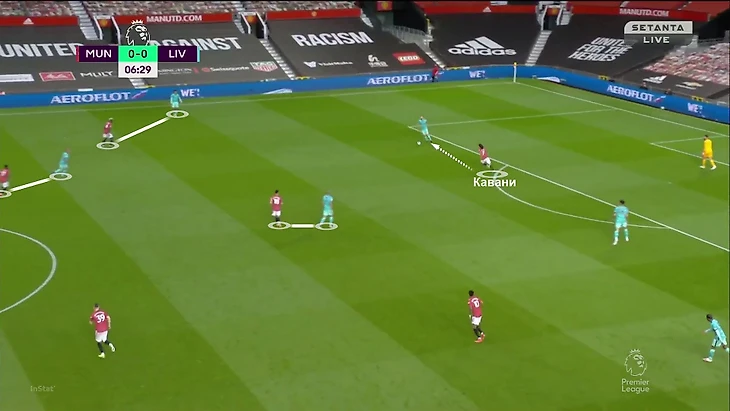 Важным элементом была компактность. Все шли до упора. Даже центральные защитники (особенно Виктор Линделеф) без проблем рушили цельность линии, чтобы сохранить прессинг. Он отлично работал именно из-за сочетания этих факторов – трудяга Кавани + момент начала давления (не любой пас, а по сигналу от Кавани) + интенсивность.