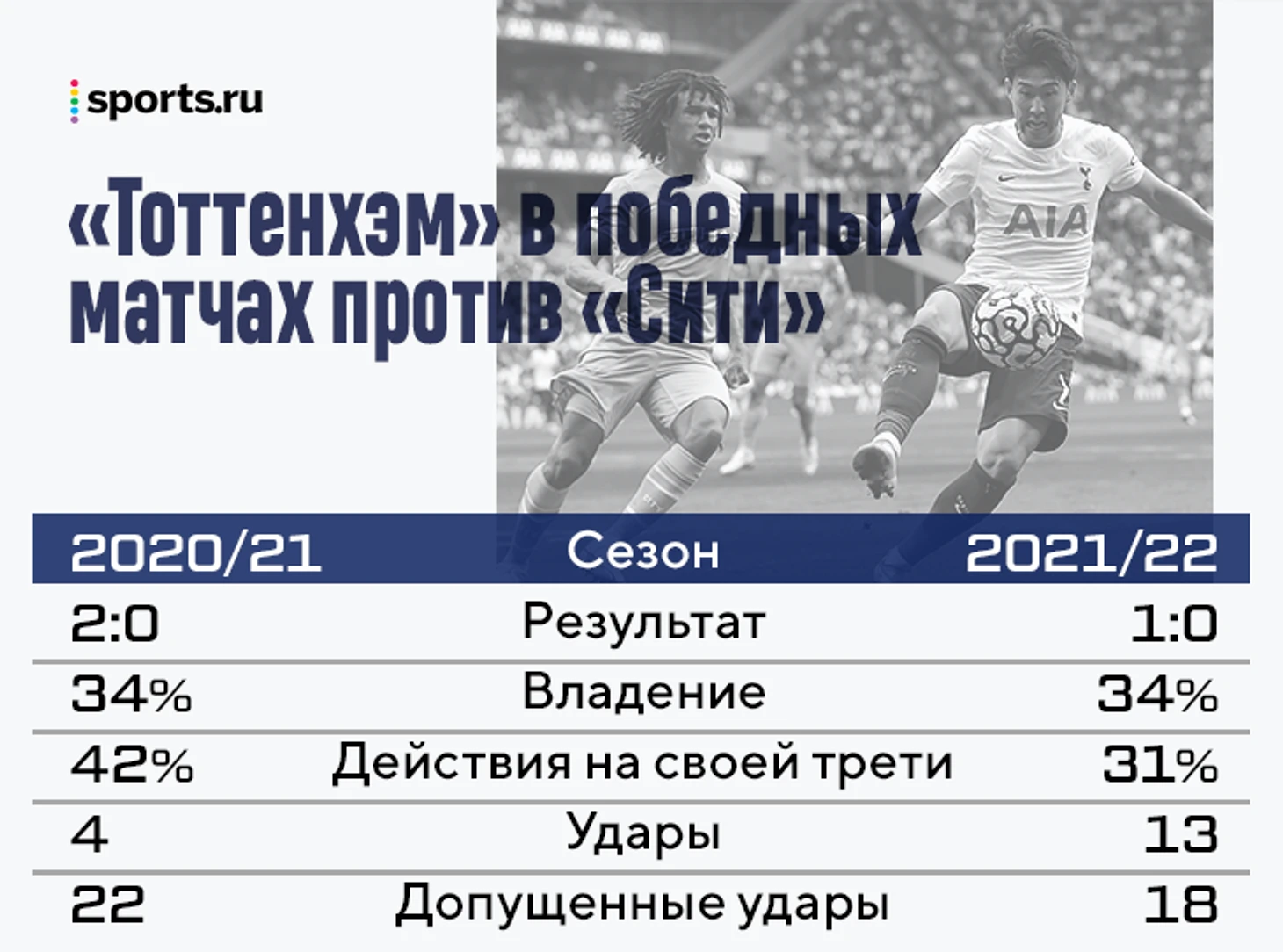 «Тоттенхэм» обыграл «Ман Сити» (1:0) и продолжил традицию сухих домашних побед над командой Пепа Гвардиолы. Последний раз каталонец побеждал «Тоттенхэм» на выезде в 2018-м – на «Уэмбли». После переезда на свой стадион лондонцы не пропускают от «Сити» и побеждают уже в четвертый раз подряд.