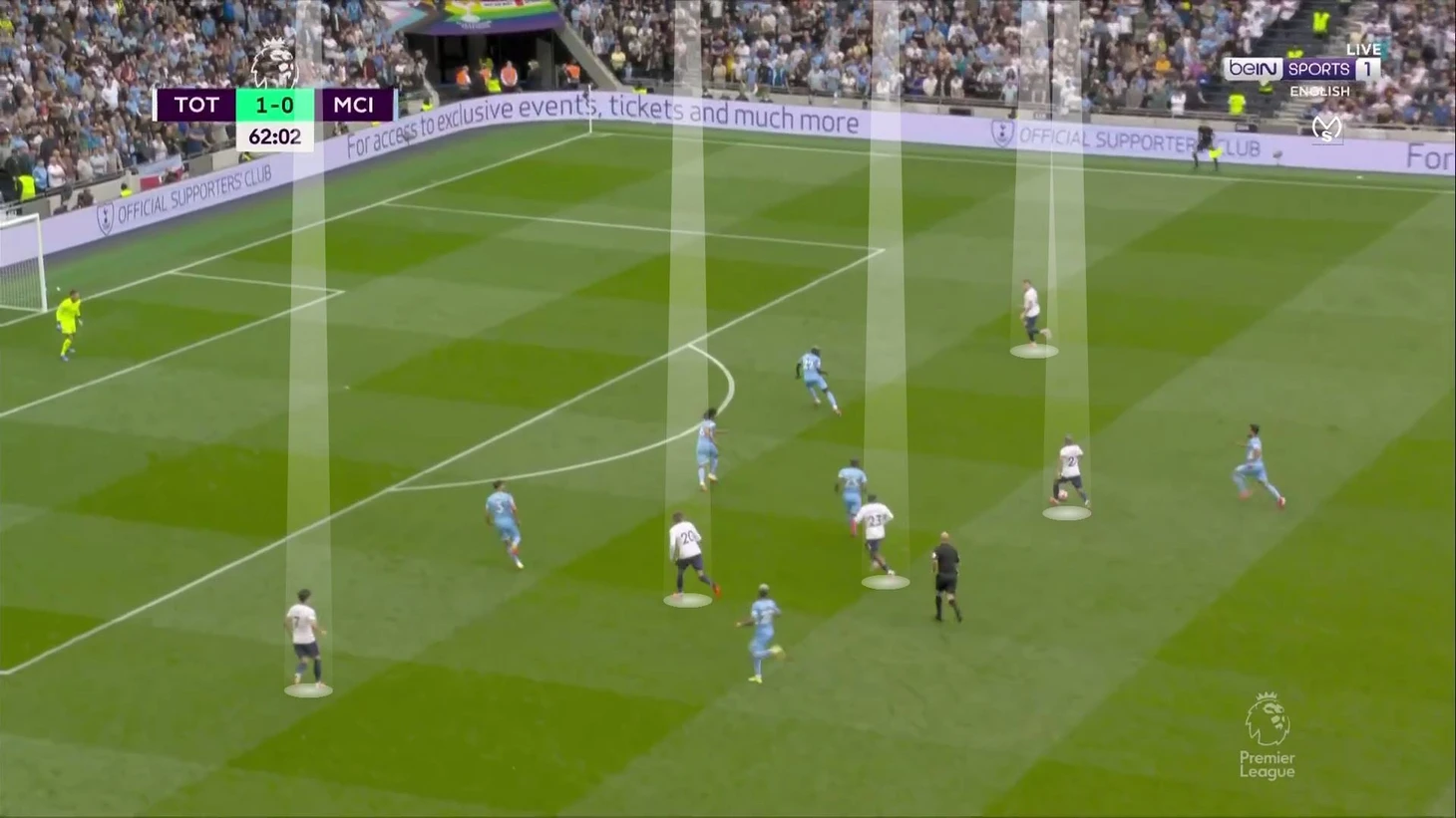 Важная деталь, которая делала описанный рисунок игры выгодным «Тоттенхэму»: узкое расположение тройки в начальной стадии обороны буквально толкало «Сити» атаковать через фланги. Даже если «Сити» получал преимущества, то именно в этих зонах. Это может быть опасным, но не сравнится с угрозой, которую несли контратаки через Сона, Моуру и Бергвейна.