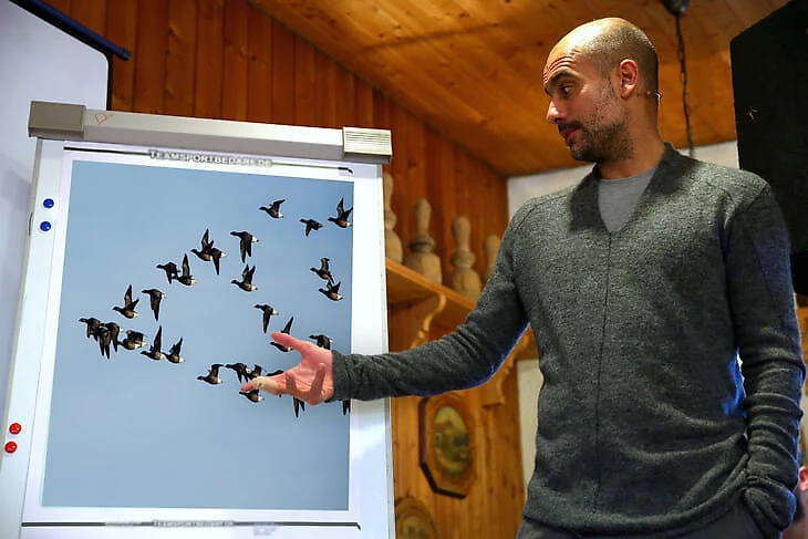 В свежей документалке «Манчестер Сити» (фильм называется «Вместе» и рассказывает о последних неделях прошлого сезона) мелькнуло забавное откровение: Пеп Гвардиола восторгается гусями, летящими клином, и ставит их в пример игрокам.