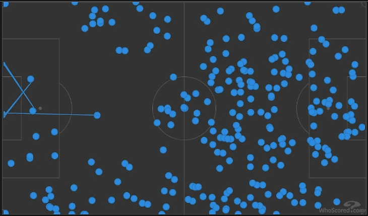 А вот карта второго тайма – касаний в опорной «Ливерпуля» практически нет: