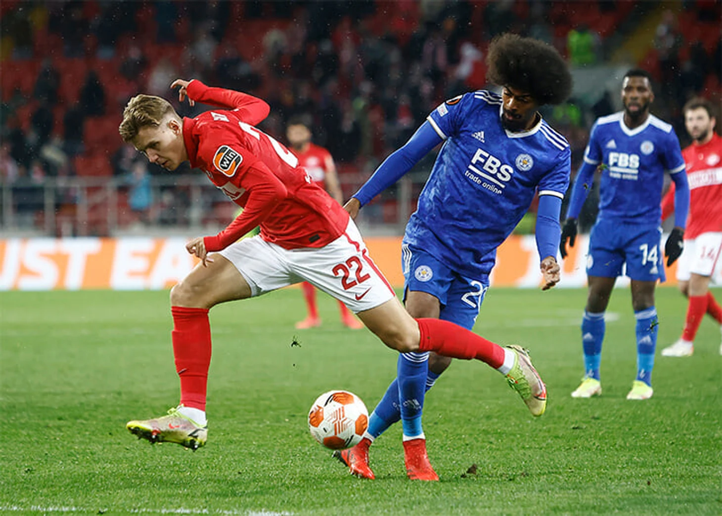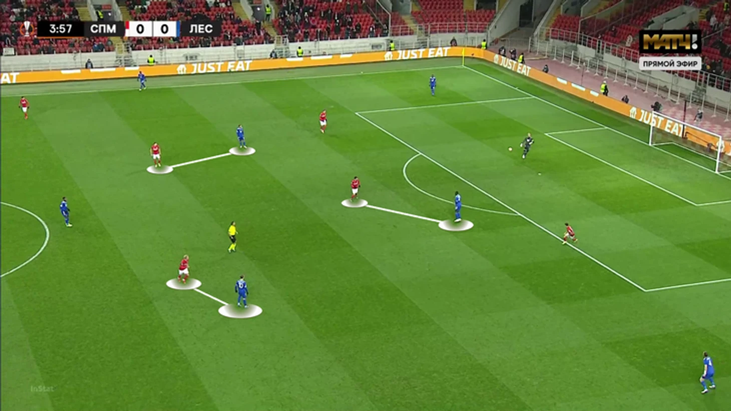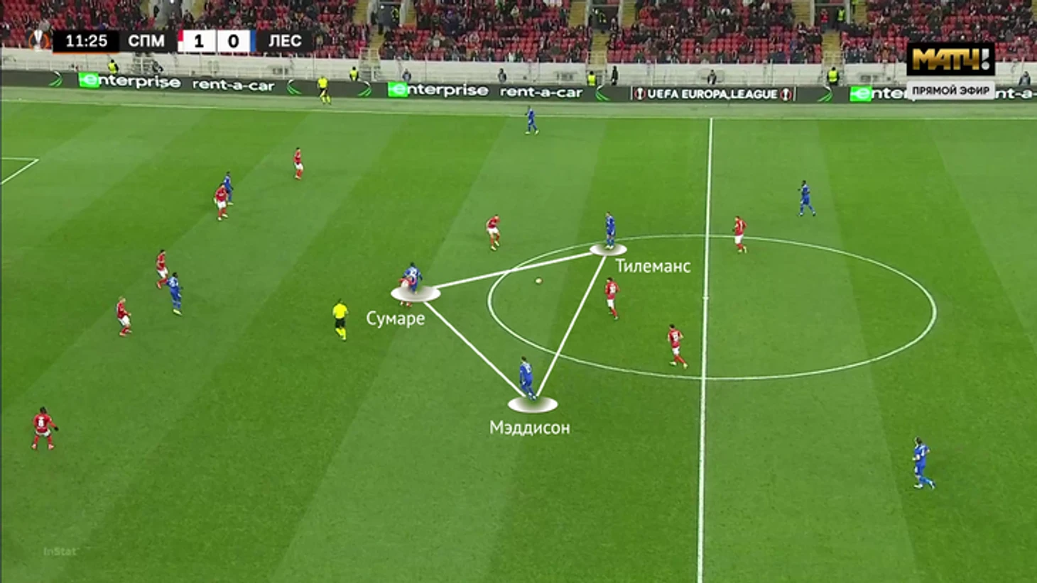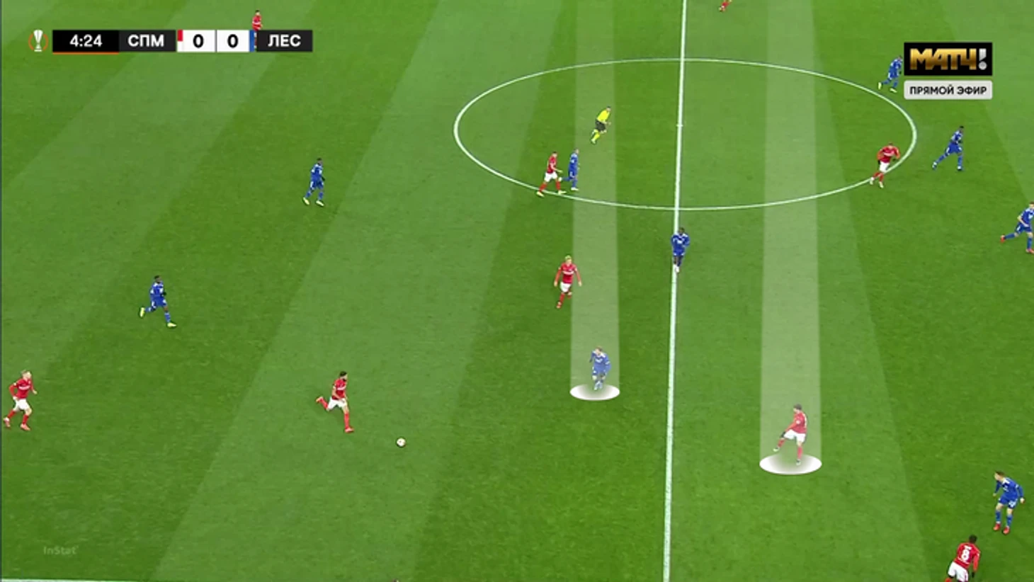 Выбор схемы автоматически означал, что «Спартак» отказывается от постоянного давления на тройку защитников «Лестера» (один из них всегда оставался свободным). Зато позволял отзеркалить схему гостей в полузащите. Наметились три пары – Бакаев против Сумаре, Зобнин против Тилеманса и Литвинов против Мэддисона.