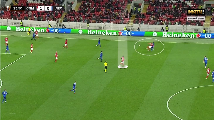 Часть нагрузки с полузащитников «Спартака» снимали контратаки. Они позволяли взять паузу от сложных заданий и банально передохнуть. Похвально, что Витория подготовил пару идей и под них – из-за этого «Лестер» не мог накрывать контрпрессингом и совсем зажимать хозяев.