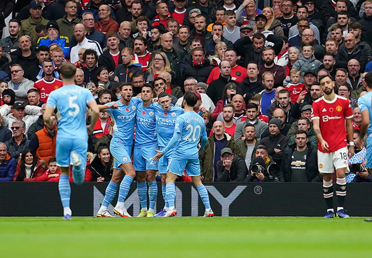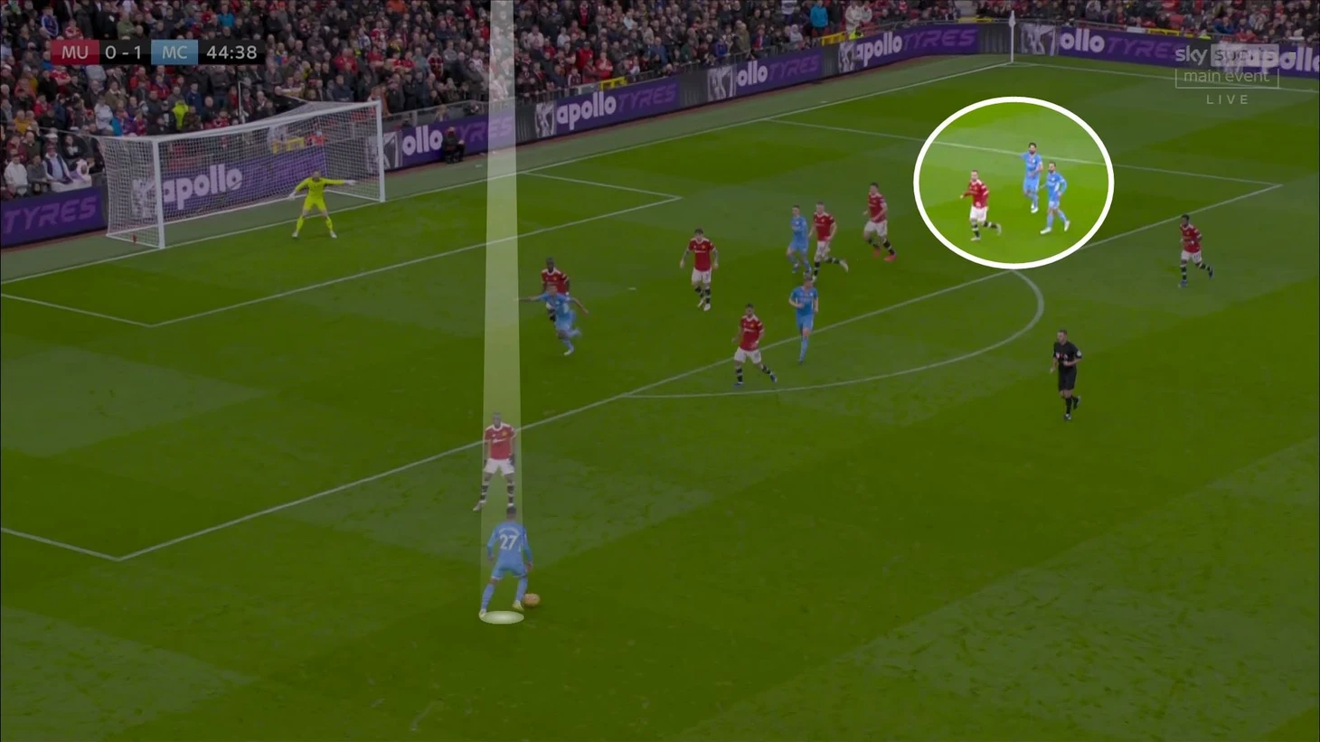 11. Второй гол – хорошее олицетворение проблем, которые организовал соседям «Сити». Во-первых, свобода Канселу при подготовке подачи. Во-вторых, ситуация 2-в-1 в зоне Шоу, который в итоге упустит Бернарду: