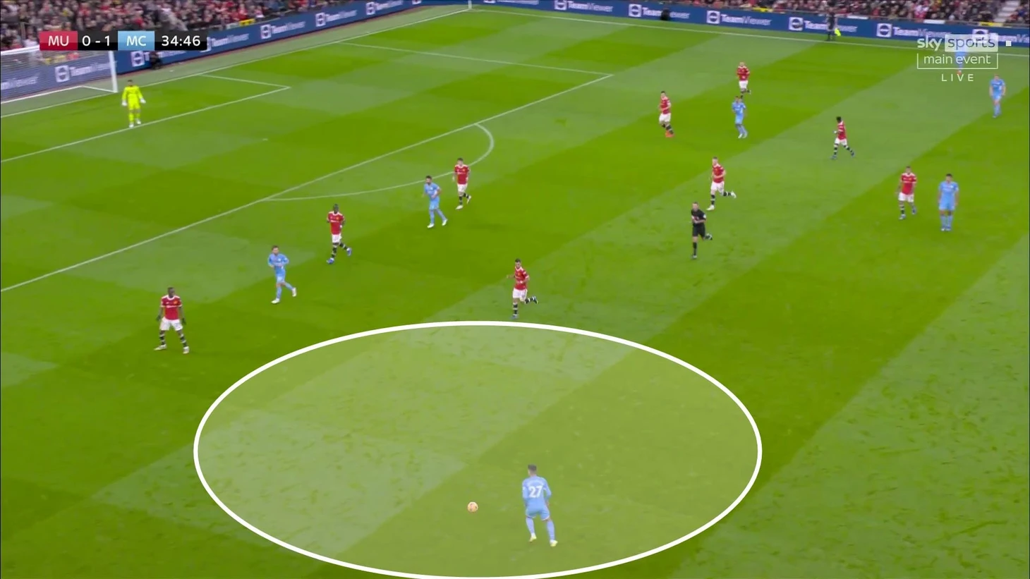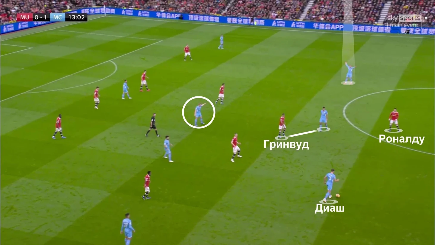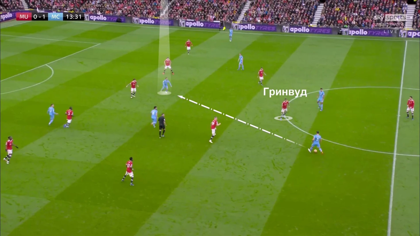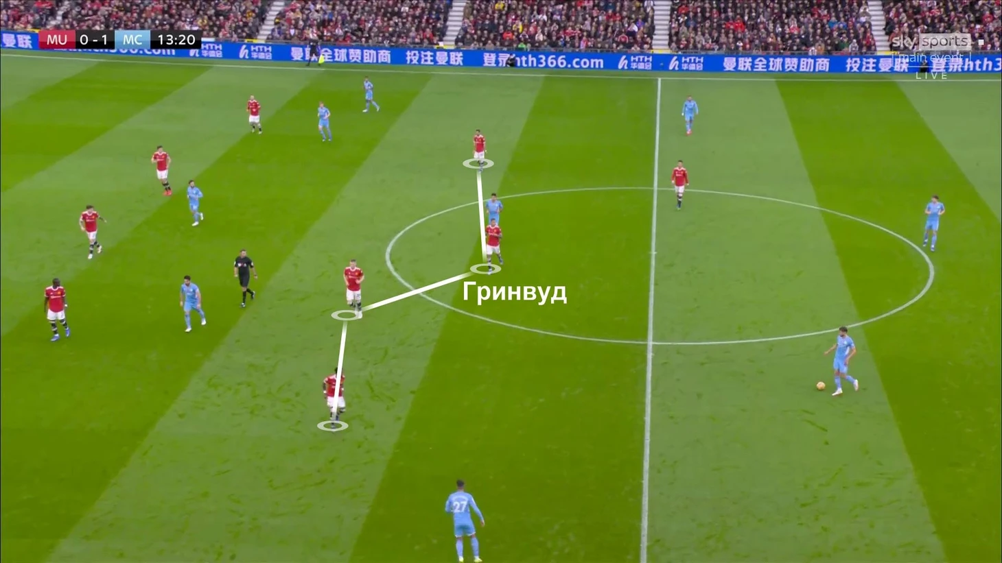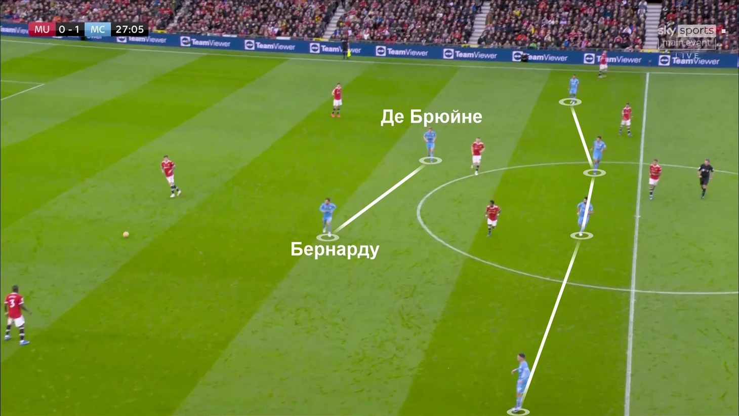 В первой половине гости были нацелены на созидание и обострение. Выбрали для этого конкретные зоны (фланговые), постоянно двигали мяч между ними, вынуждая «МЮ» смещаться (у них не получалось), и вскрывали соперника.