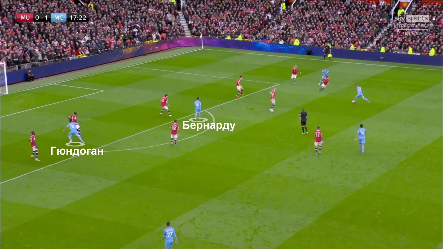 «Переводы мяча с фланга на фланг были очень важны из-за схемы «Юнайтед». Они обороняются в 5-3-2. При такой схеме во второй стадии наших розыгрышей тройка полузащитников соперника не может контролировать всю ширину поля. Именно в этих зонах после переводов возникало пространство. Игроками, которые его использовали, были Кайл Уокер и Жоау Канселу».