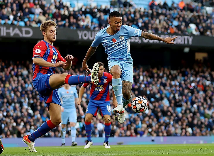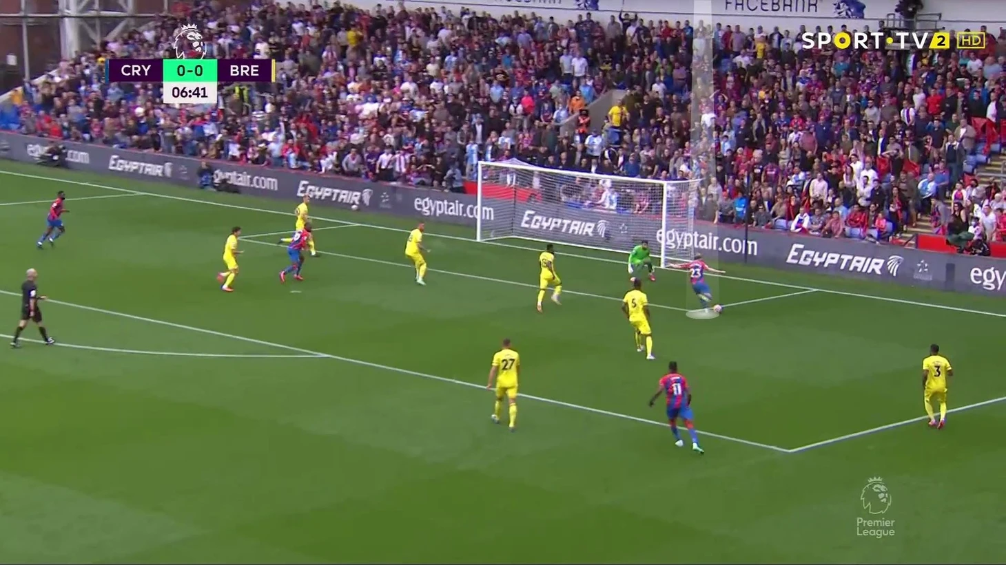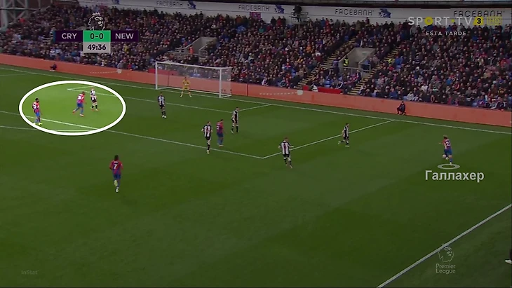 «Пэлас» добрался до чужой штрафной через фланговый розыгрыш, а из-за попыток соперника реагировать Галлахер получил мяч свободным: