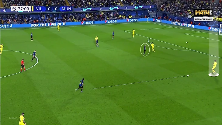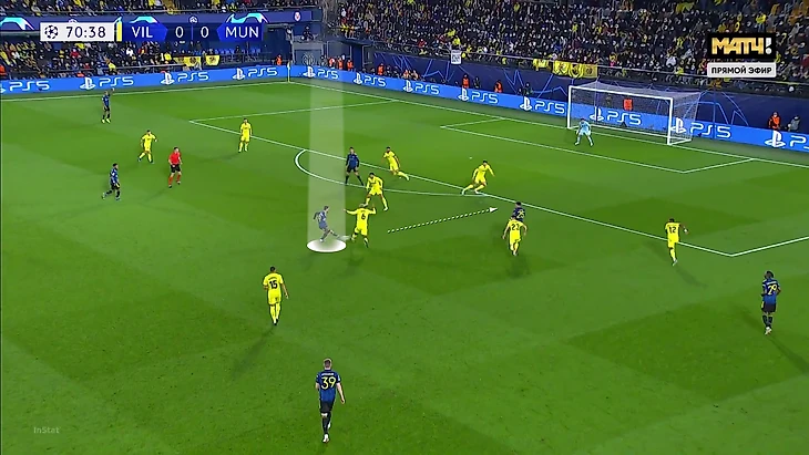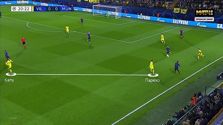 На это повлиял и перевод Марсьяля налево (за счет техники помогал «МЮ» выходить из-под прессинга), и общая усталость «Вильярреала». Тут показательно, насколько поздно в давление вступает Капу: