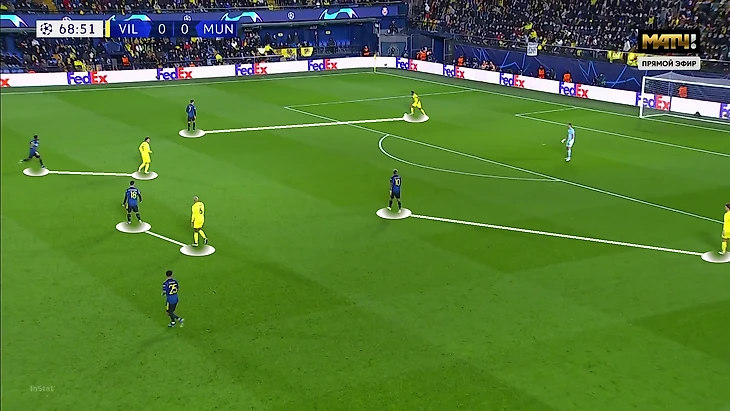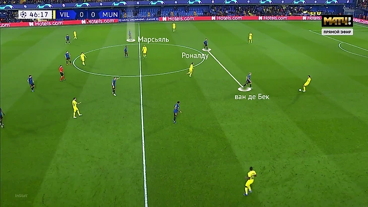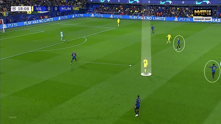 Еще один источник остроты «Вильярреала» – прессинг. Команда использовала два варианта. Один – более осторожный, другой – более смелый. Но сам подход значительно отличался от стиля «МЮ» – тут прессинг хотя бы был в принципе.