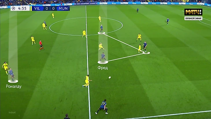 Без мяча картина менялась. Роналду смещался на одну линию к Антони Марсьялю, а Фред превращался в левого полузащитника: