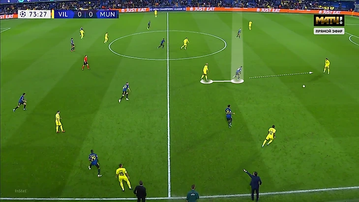 При этом назвать перфоманс «МЮ» максимально надежным тоже нельзя. По ходу матча «Вильярреал» приспособился к схеме гостей и их явному акценту на опорниках. Классический вариант – открывания Мойсеса Гомеса и Ману Тригероса в полуфлангах и передачи на них от защитников.