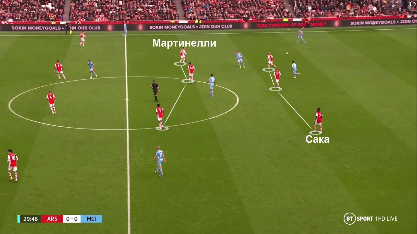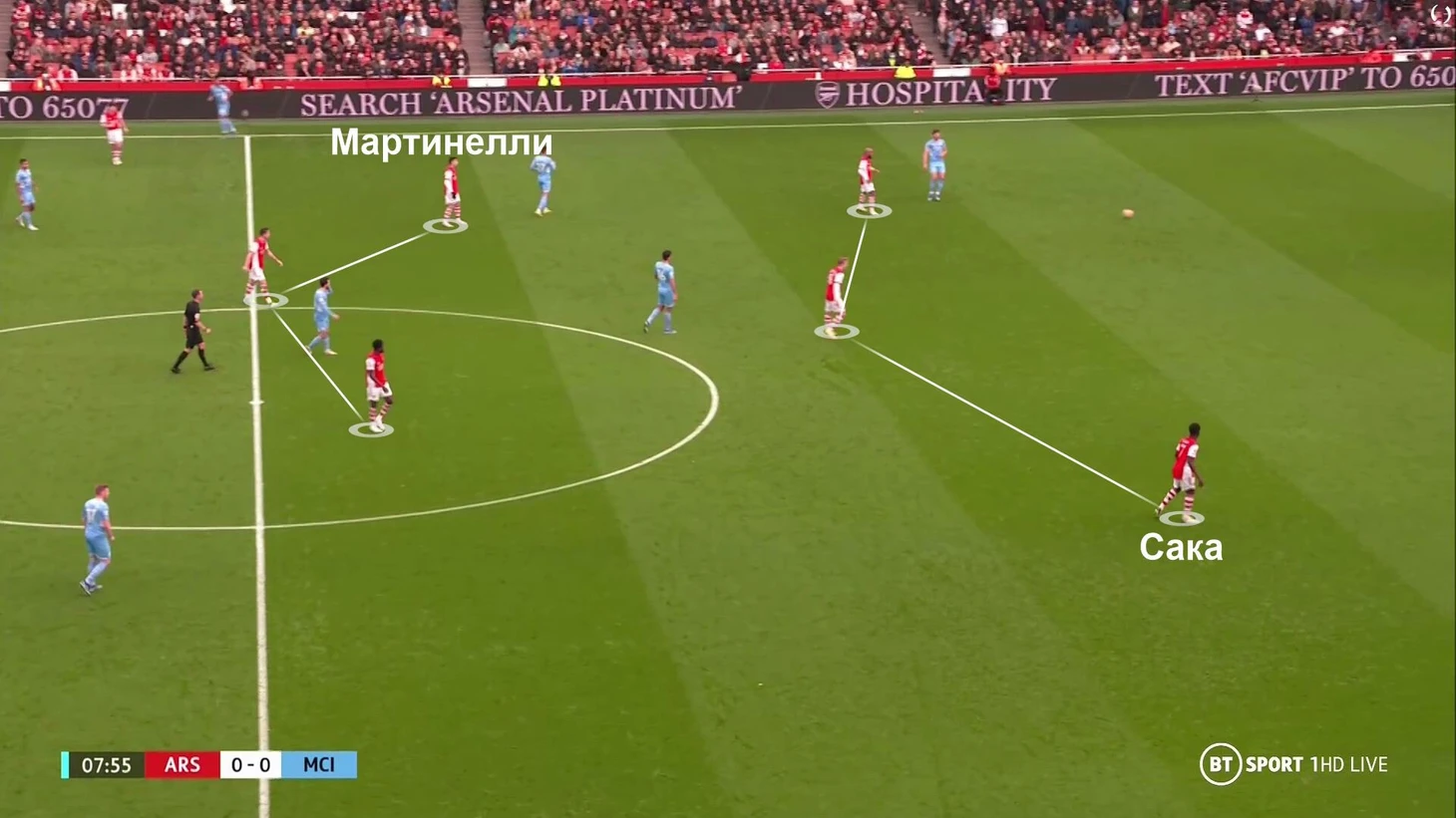 Они постоянно менялись позициями в рамках гибкой структуры. Это могло привести к потенциальным проблемам (их начали терять), но через 7 минут «Арсенал» подготовил контрход.